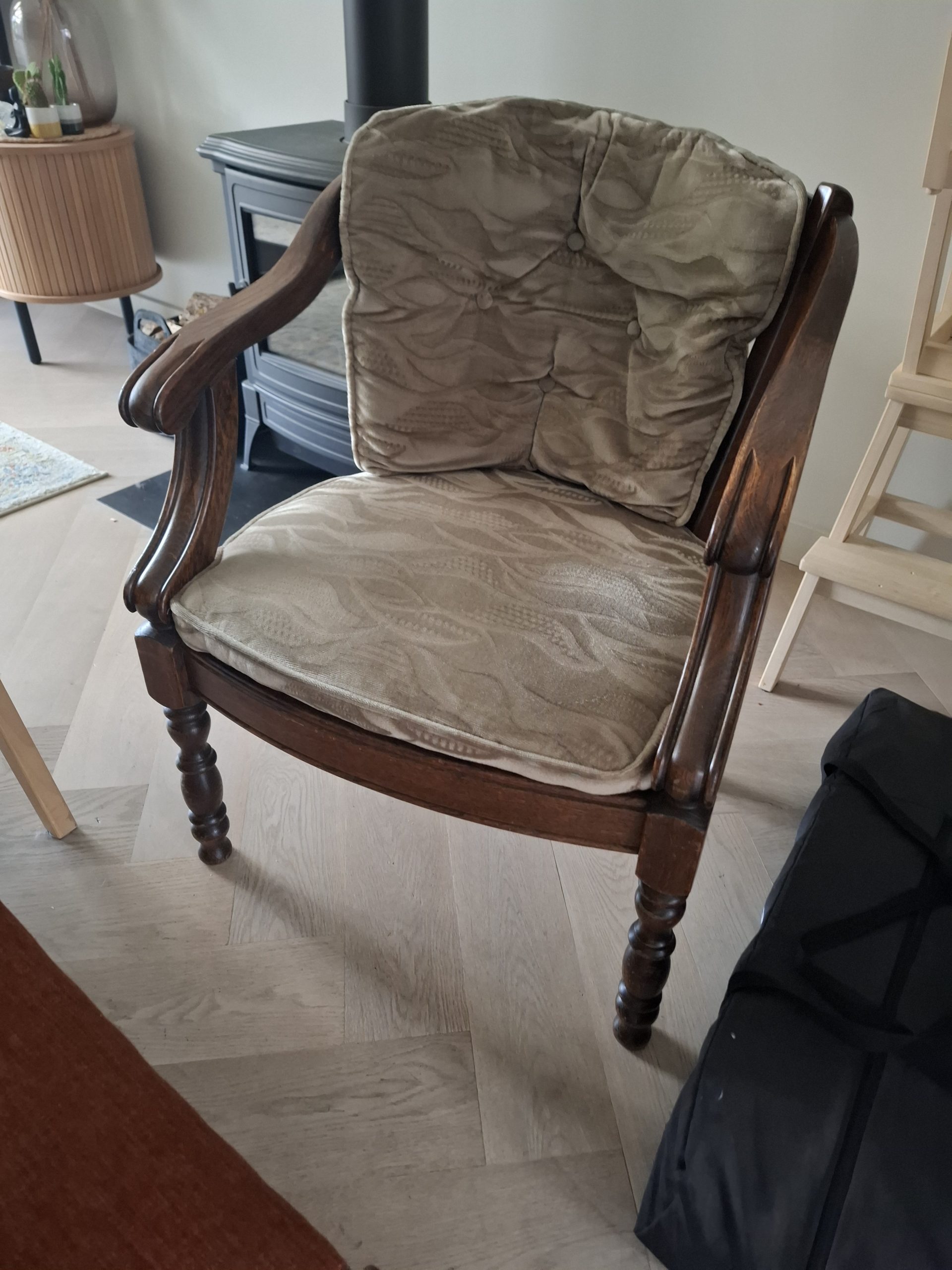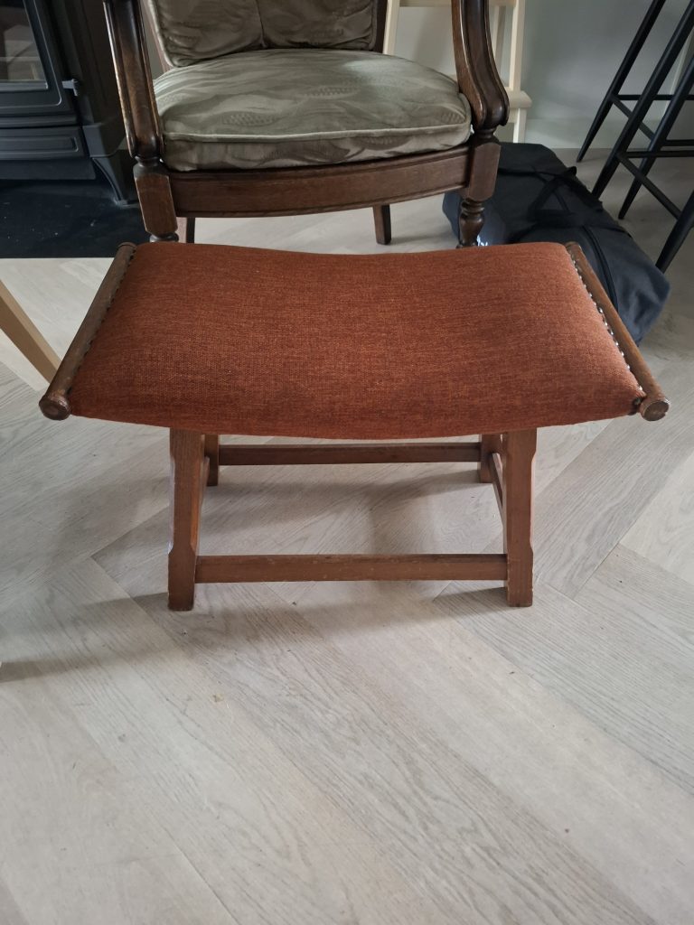 Voor deze klant mochten we een bijzondere set onder handen nemen: de stoel en het krukje van haar oma.
