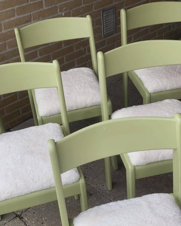 Lichtgroen en zachtwit: ‘Green Squad’ brengt kleur en gezelligheid! Wat zitten ze fijn deze geüpcyclede Heutink stoelen!